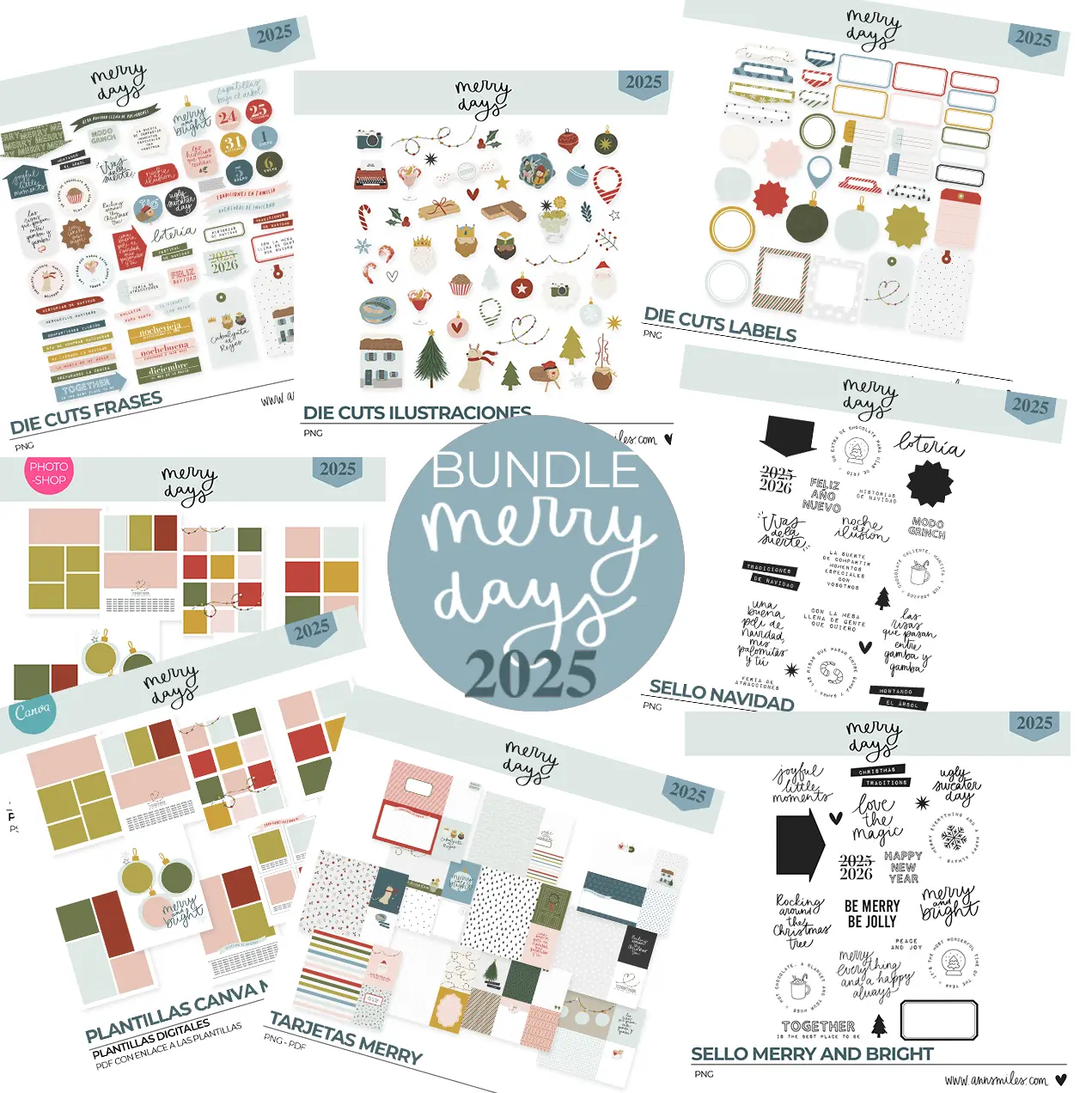 El Bundle Merry Days 2025 en incluye Tarjetas, Sellos, Plantillas y Die Cuts de Ann’s Miles.