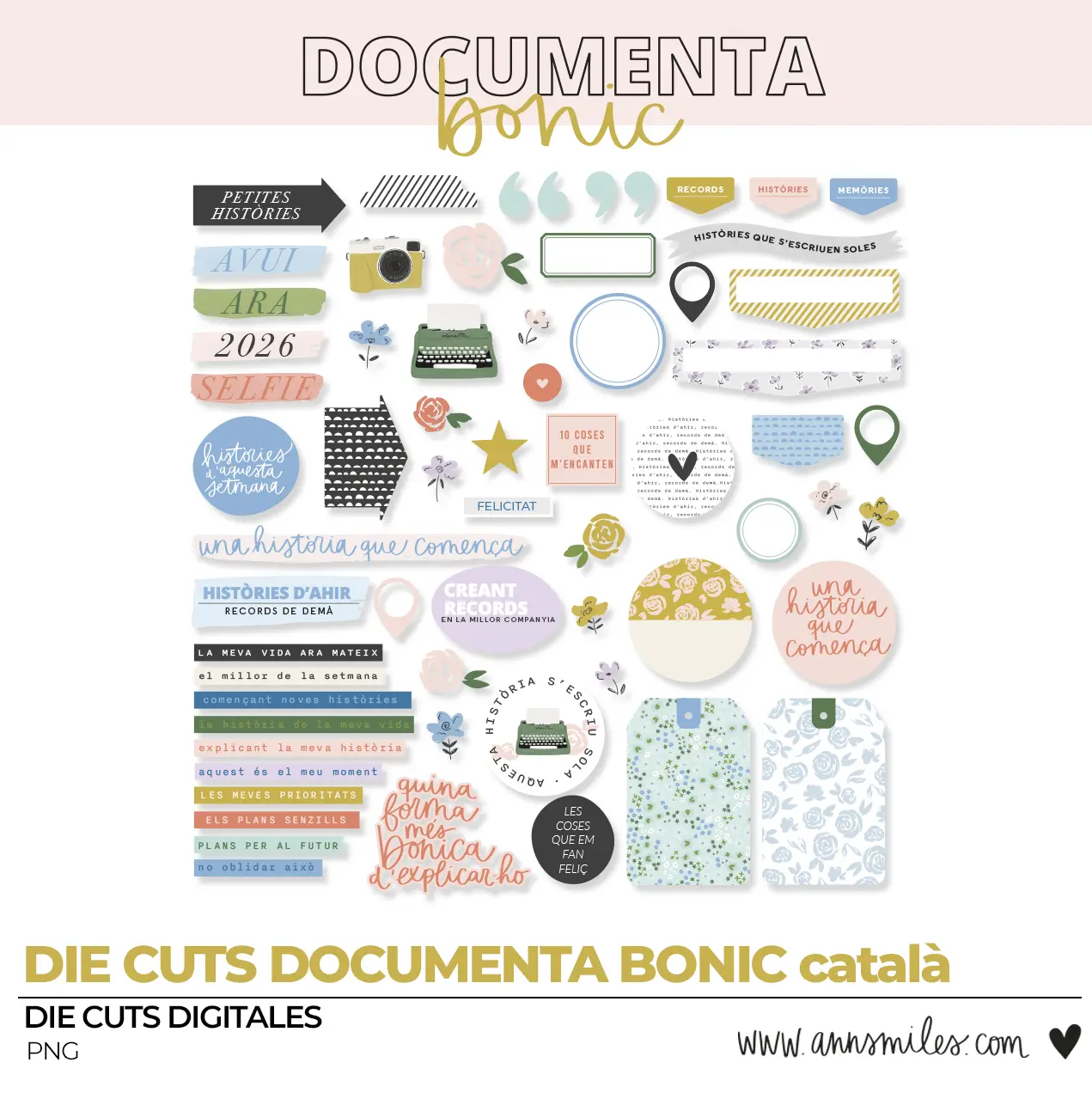 DIE CUTS DIGITALES DOCUMENTA BONITO SCRAPBOOKINGDie Cuts Documenta Bonic (Catalán)
