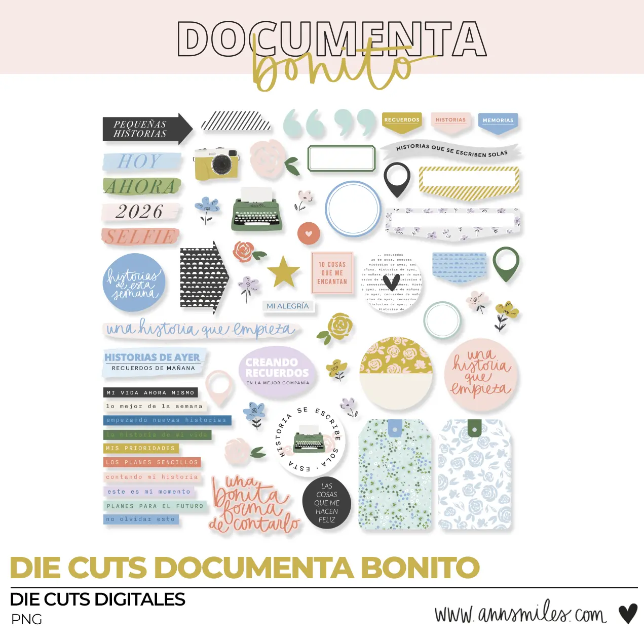 Los Die Cuts Documenta Bonito para Scrapbooking incluye imágenes por cada Die Cuts en formato .png.