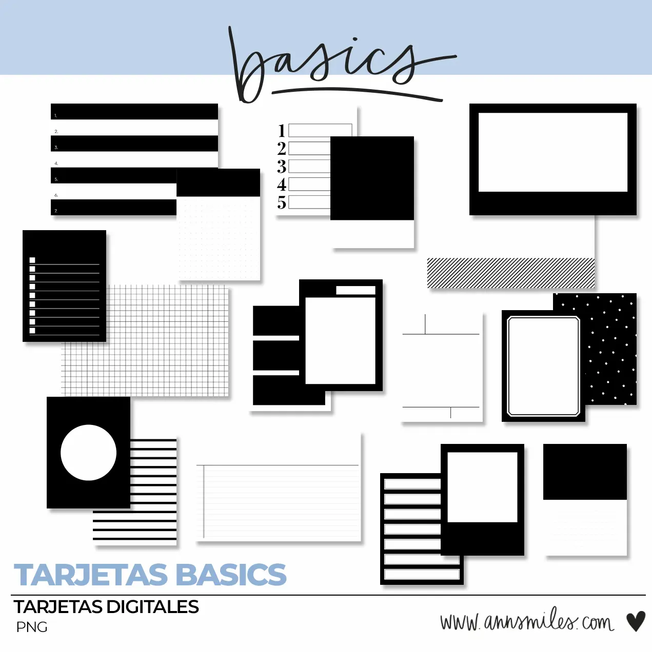Las colección de Tarjetas Digitales Basics de Ann’s Miles incluye un total de 20 tarjetas en formato png.